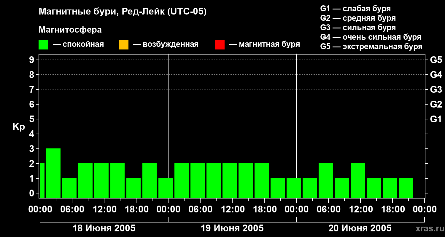 Магнитные бури в Ред-Лейке 20 июня 2005 года