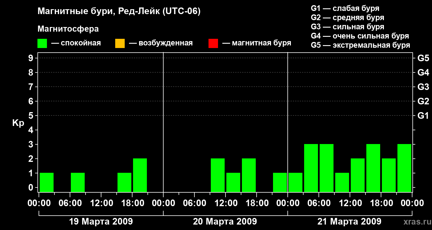 Магнитные бури в Ред-Лейке 21 марта 2009 года