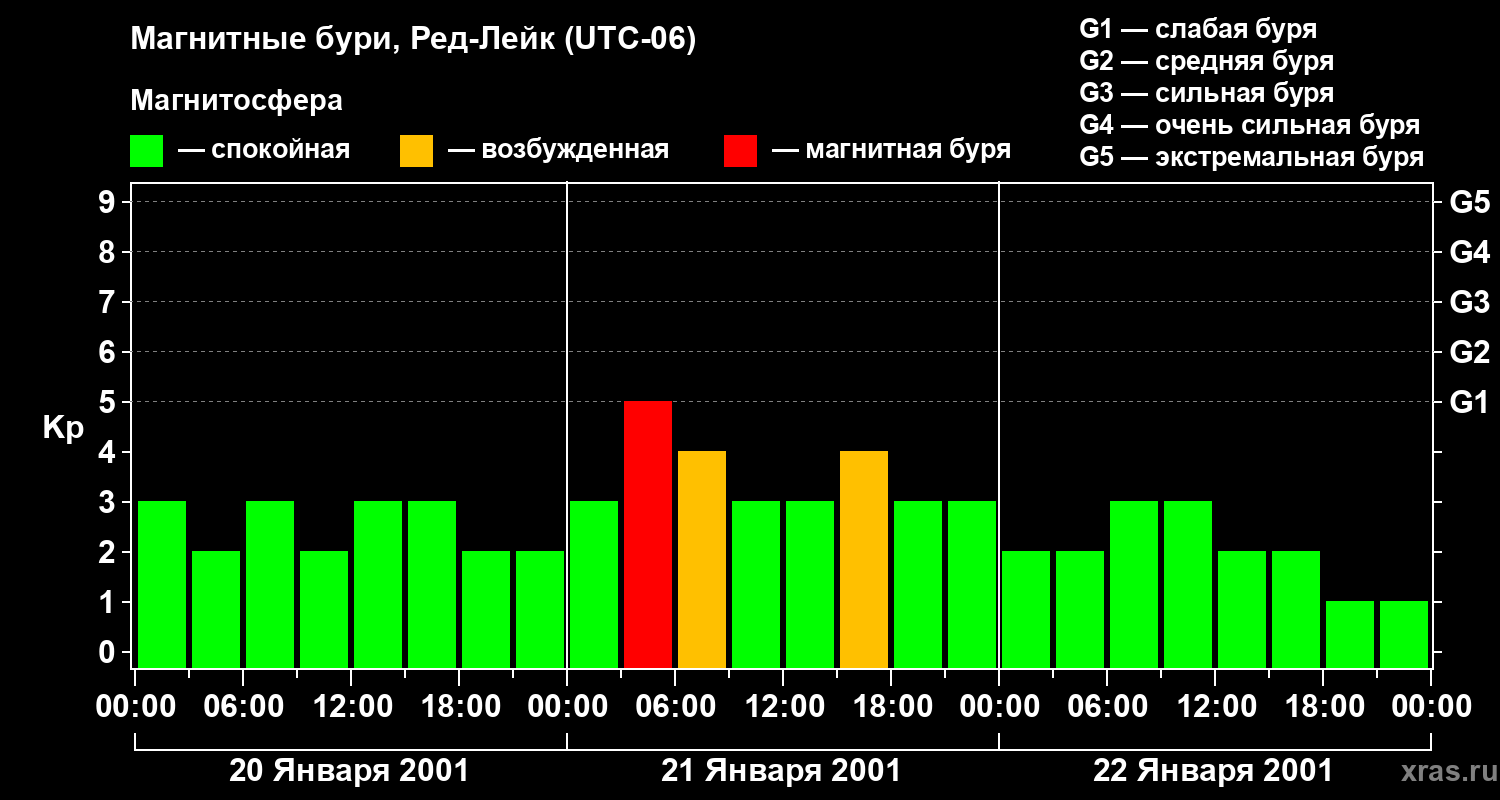 Магнитные бури в Ред-Лейке 22 января 2001 года