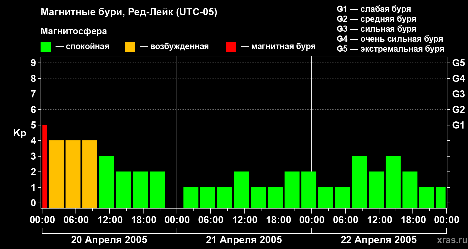 Магнитные бури в Ред-Лейке 22 апреля 2005 года