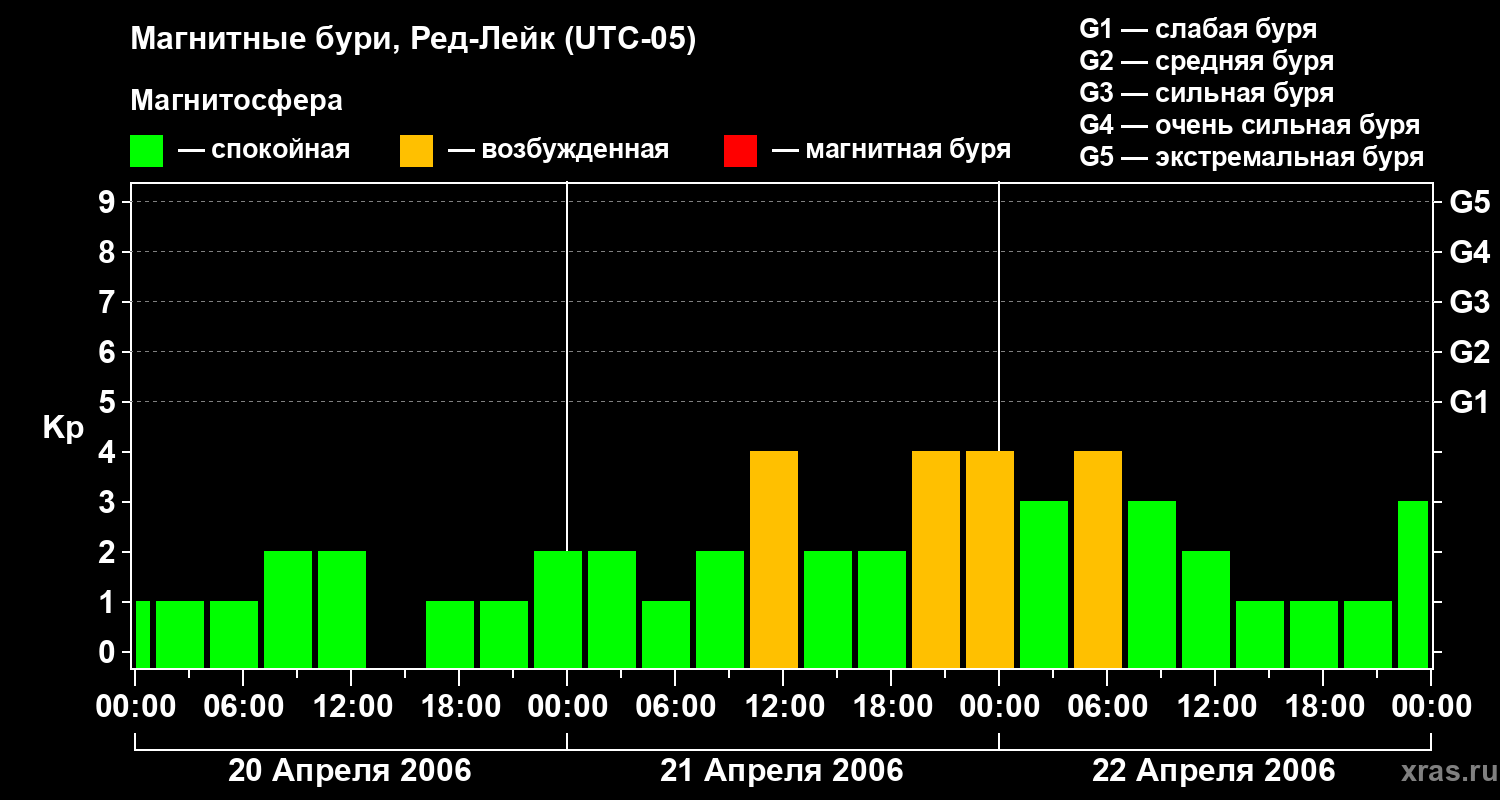 Магнитные бури в Ред-Лейке 22 апреля 2006 года