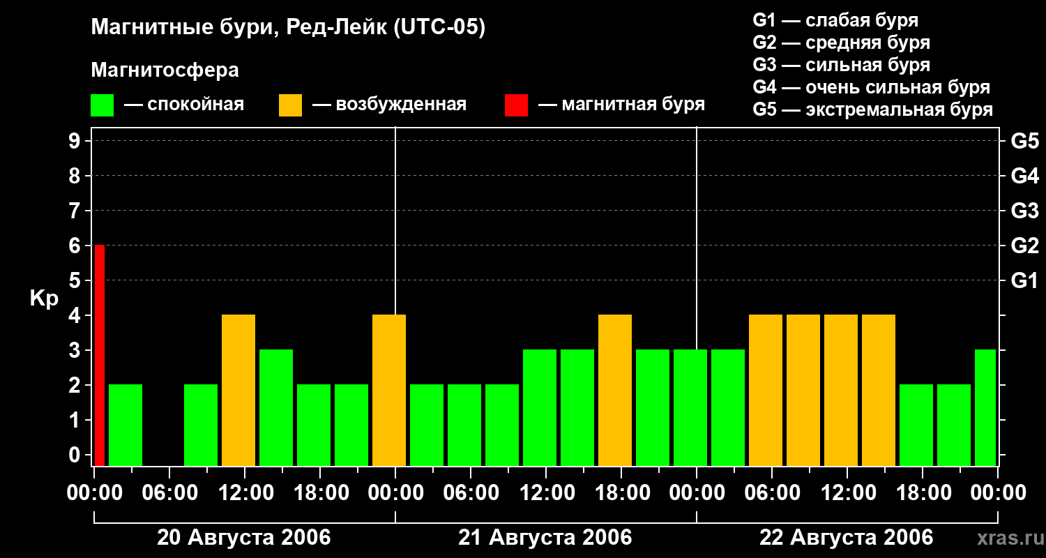 Магнитные бури в Ред-Лейке 22 августа 2006 года