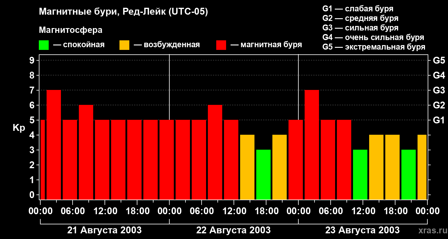 Магнитные бури в Ред-Лейке в августе 2003 года