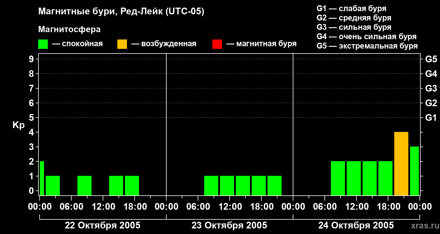 Магнитные бури в Ред-Лейке 24 октября 2005 года