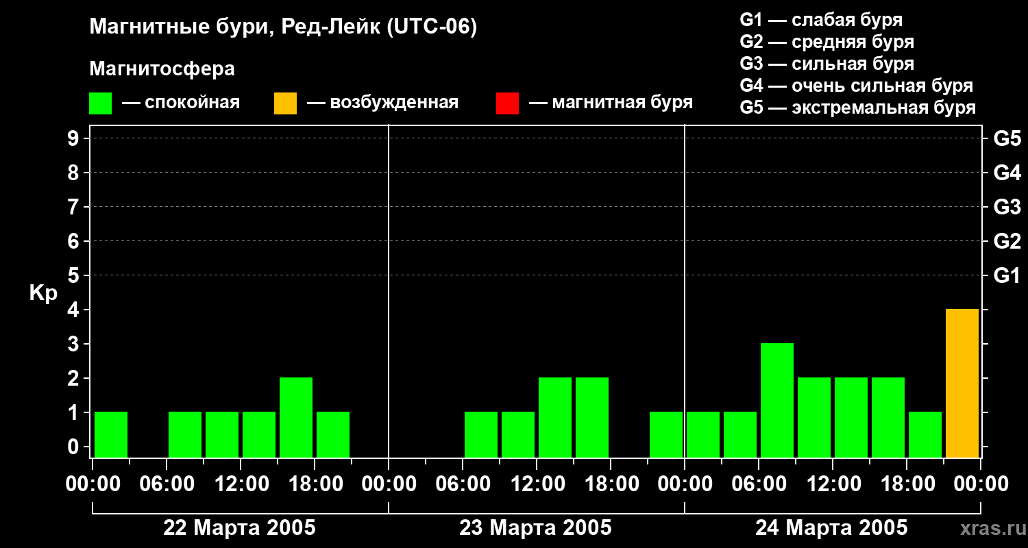 Магнитные бури в Ред-Лейке 24 марта 2005 года