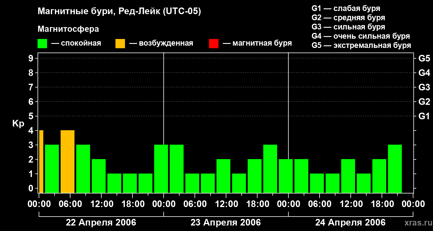Магнитные бури в Ред-Лейке 24 апреля 2006 года