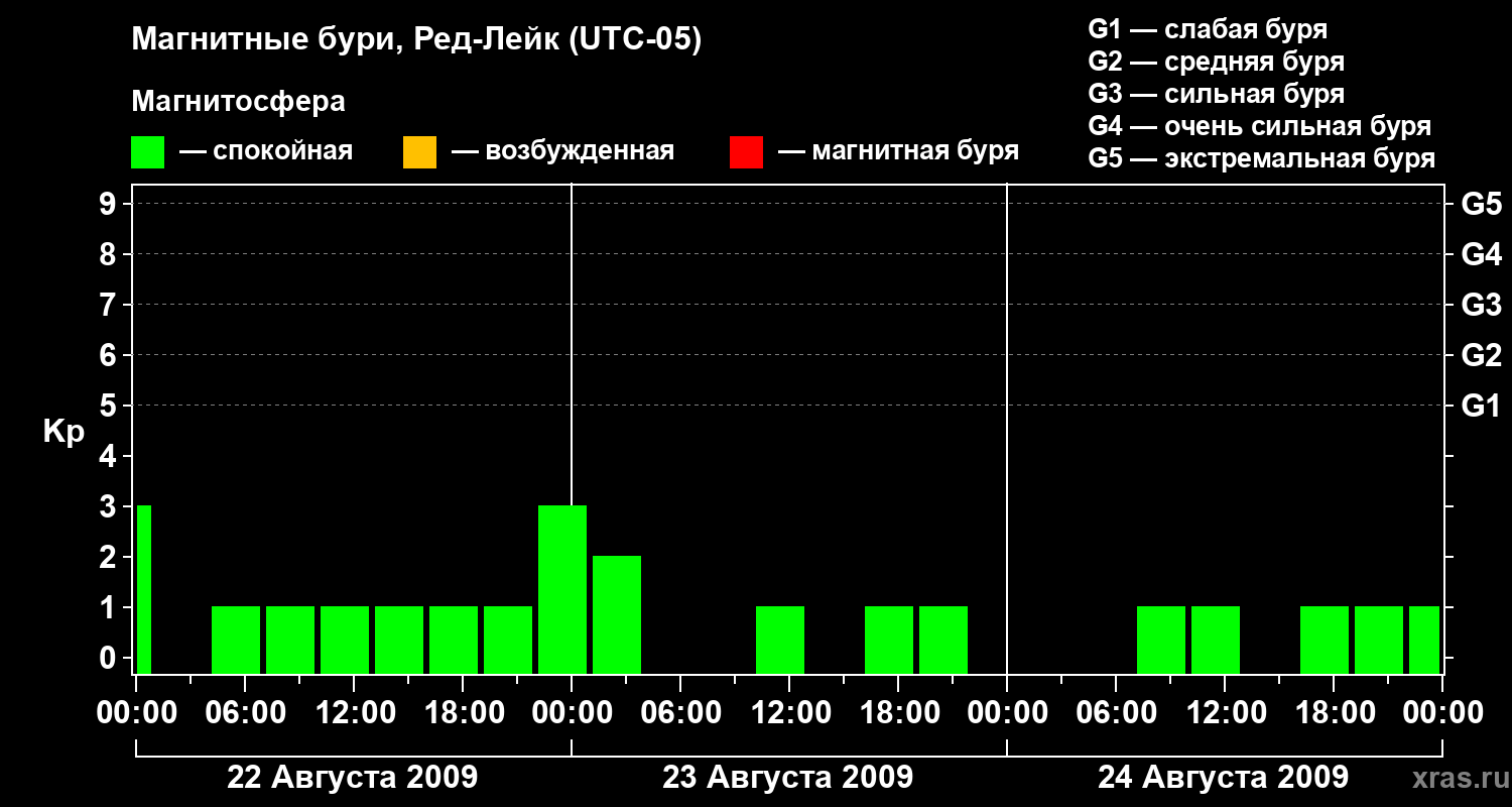 Магнитные бури в Ред-Лейке 24 августа 2009 года