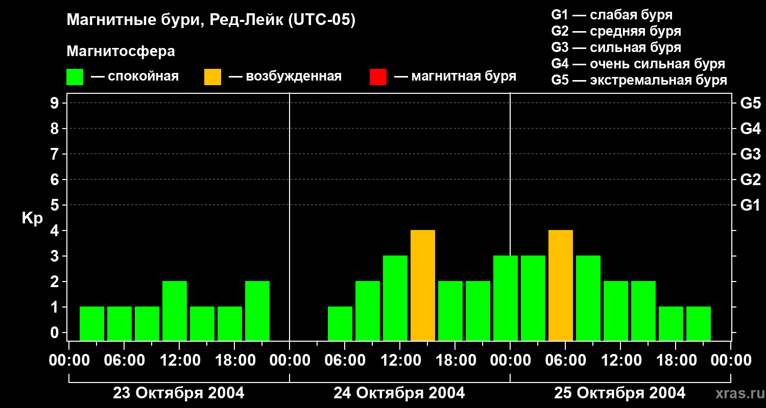 Магнитные бури в Ред-Лейке 25 октября 2004 года