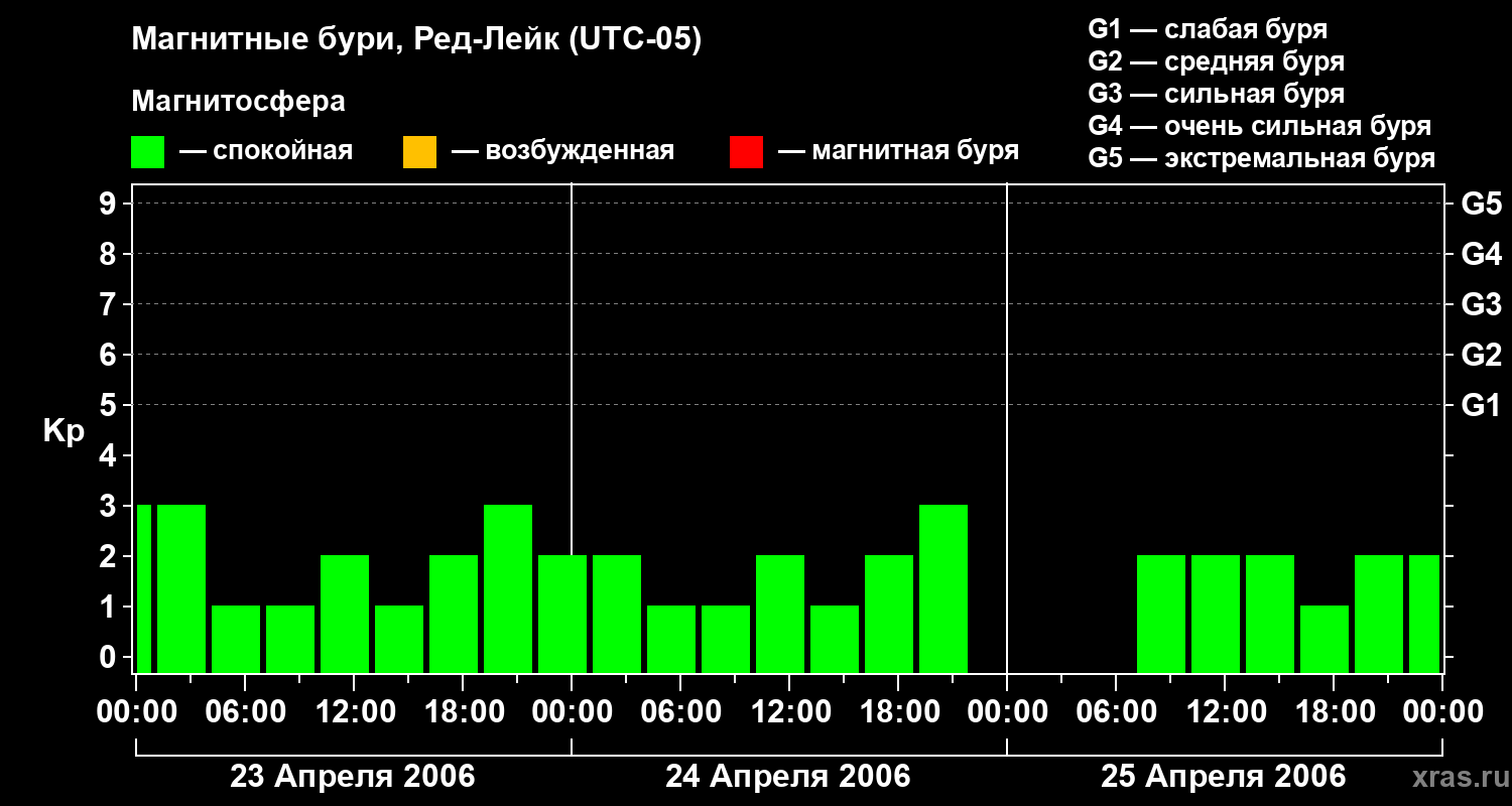 Магнитные бури в Ред-Лейке 25 апреля 2006 года