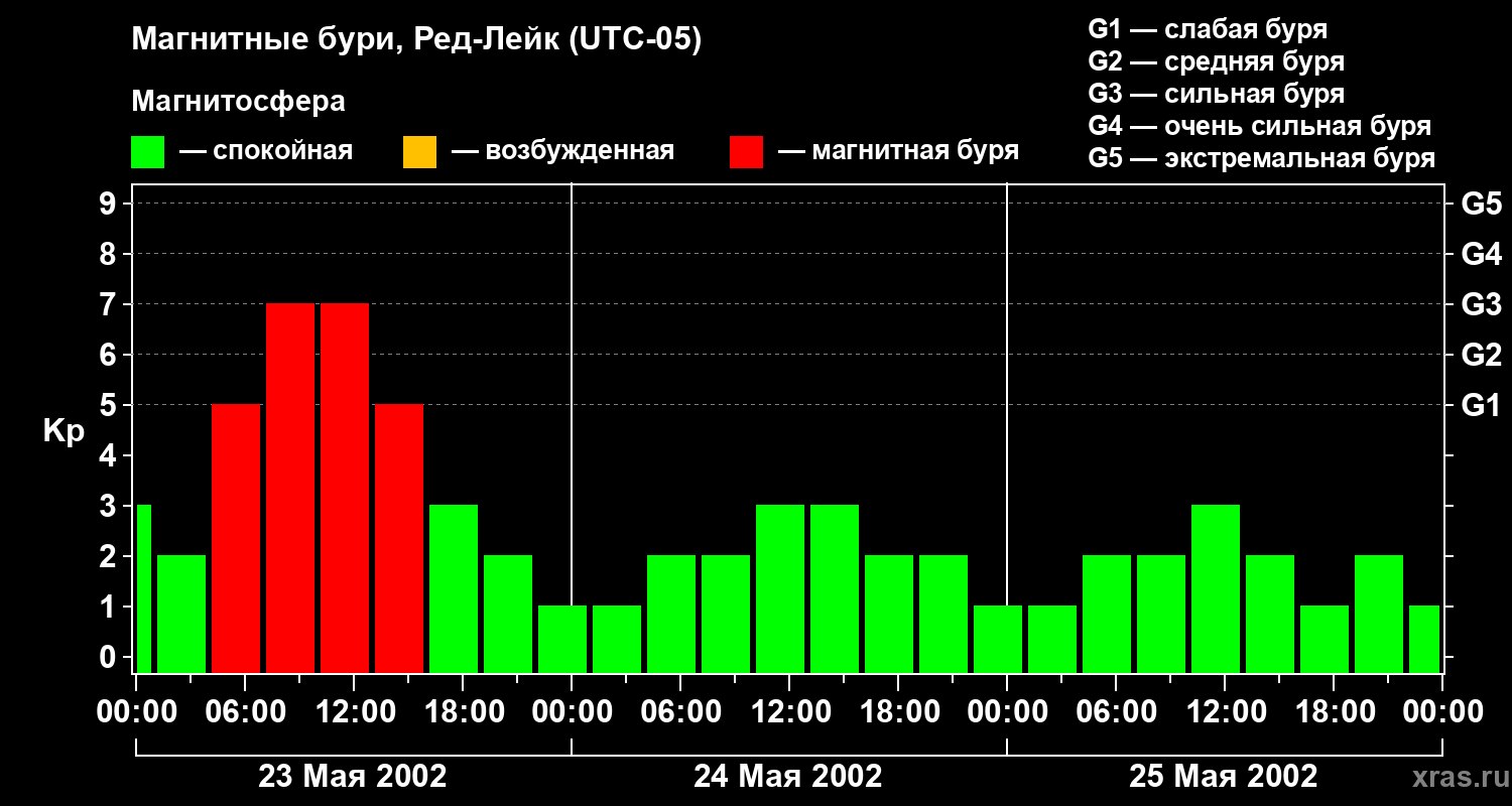 Магнитные бури в Ред-Лейке в мае 2002 года