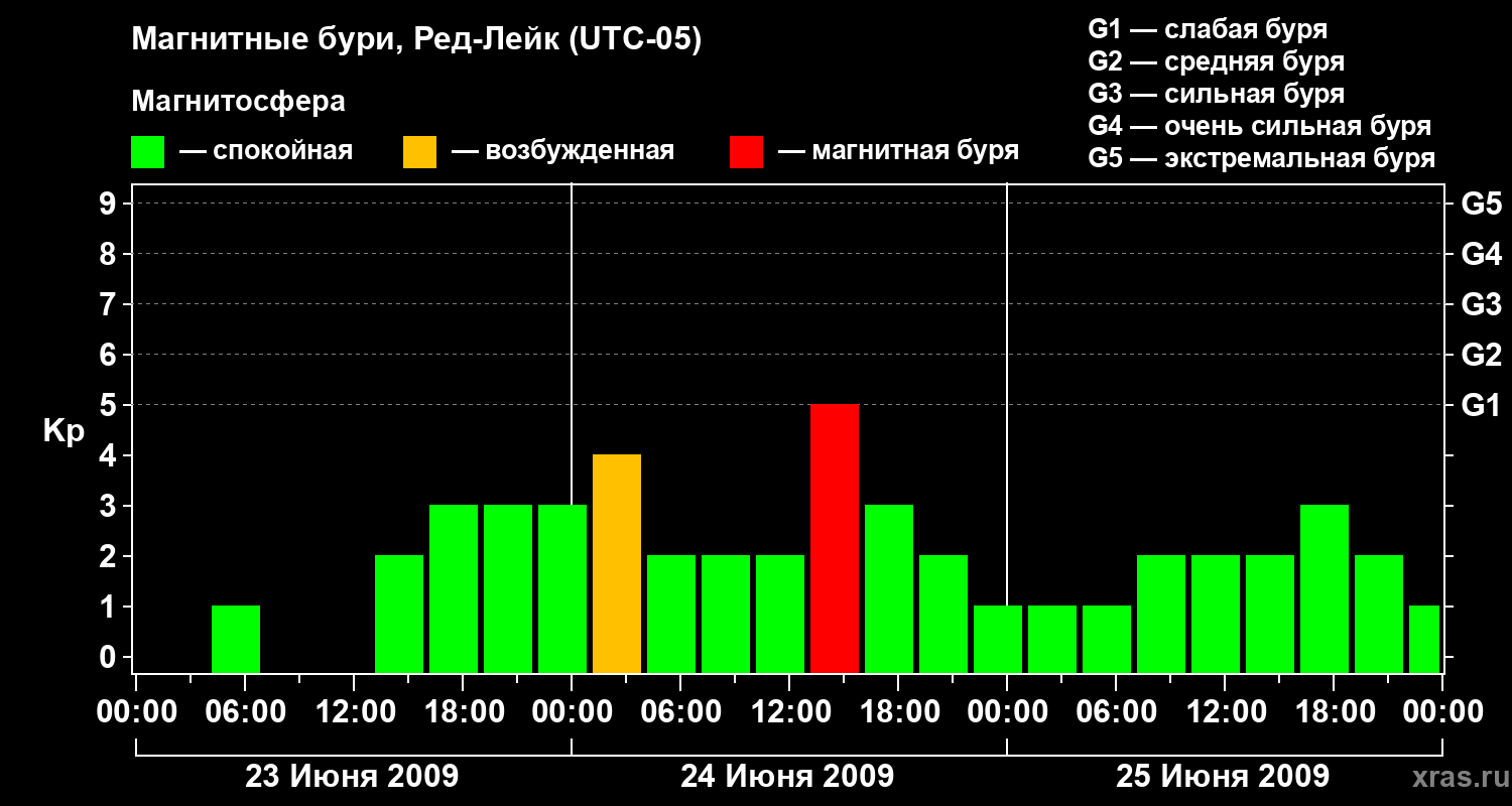 Магнитные бури в Ред-Лейке 25 июня 2009 года