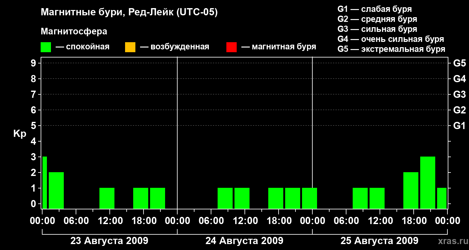 Магнитные бури в Ред-Лейке 25 августа 2009 года