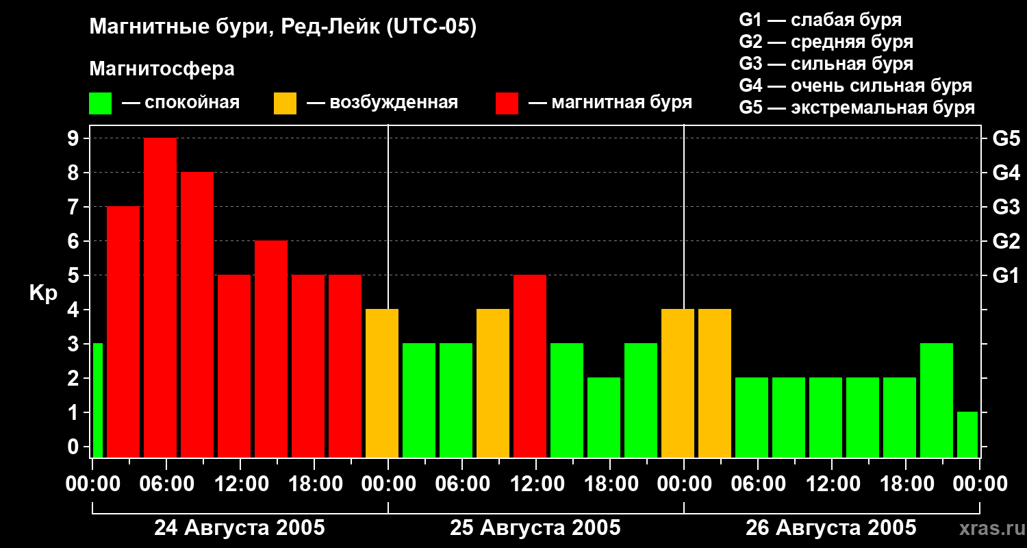 Магнитные бури в Ред-Лейке 26 августа 2005 года