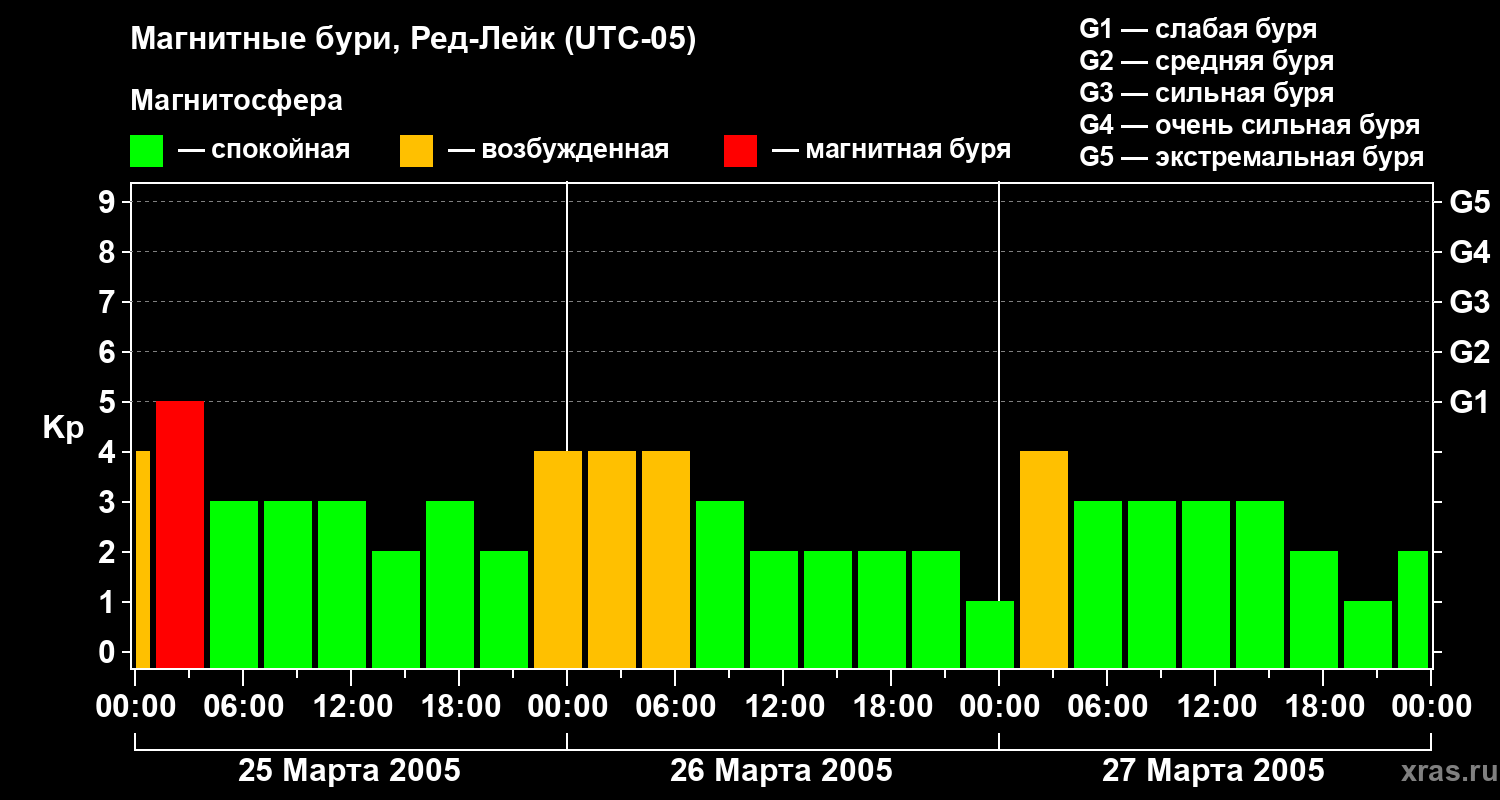 Магнитные бури в Ред-Лейке 27 марта 2005 года