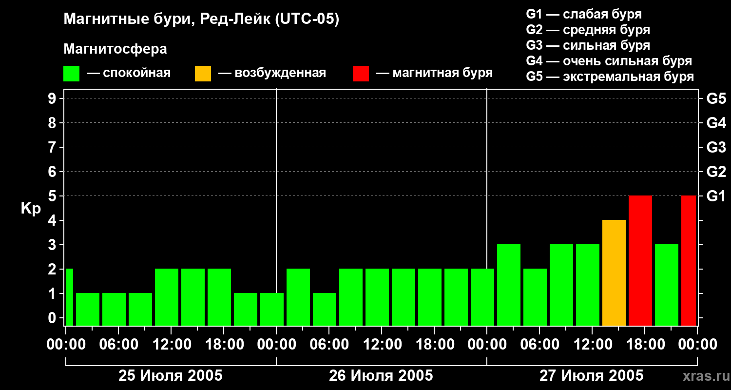 Магнитные бури в Ред-Лейке 27 июля 2005 года