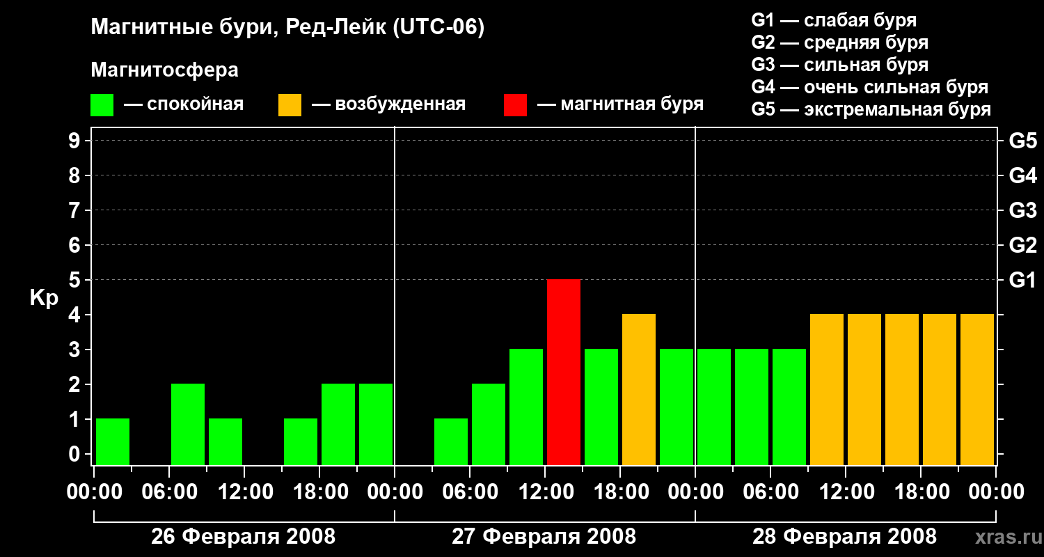Магнитные бури в Ред-Лейке 28 февраля 2008 года