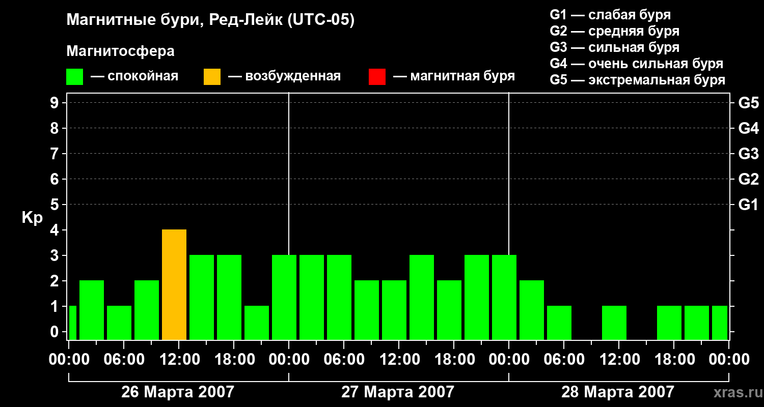 Магнитные бури в Ред-Лейке 28 марта 2007 года