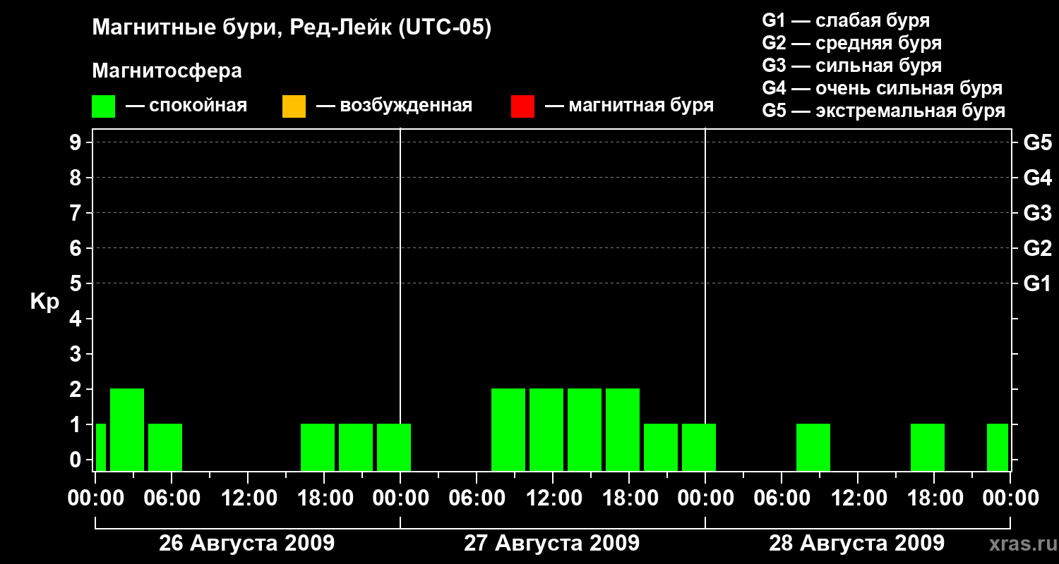 Магнитные бури в Ред-Лейке 28 августа 2009 года