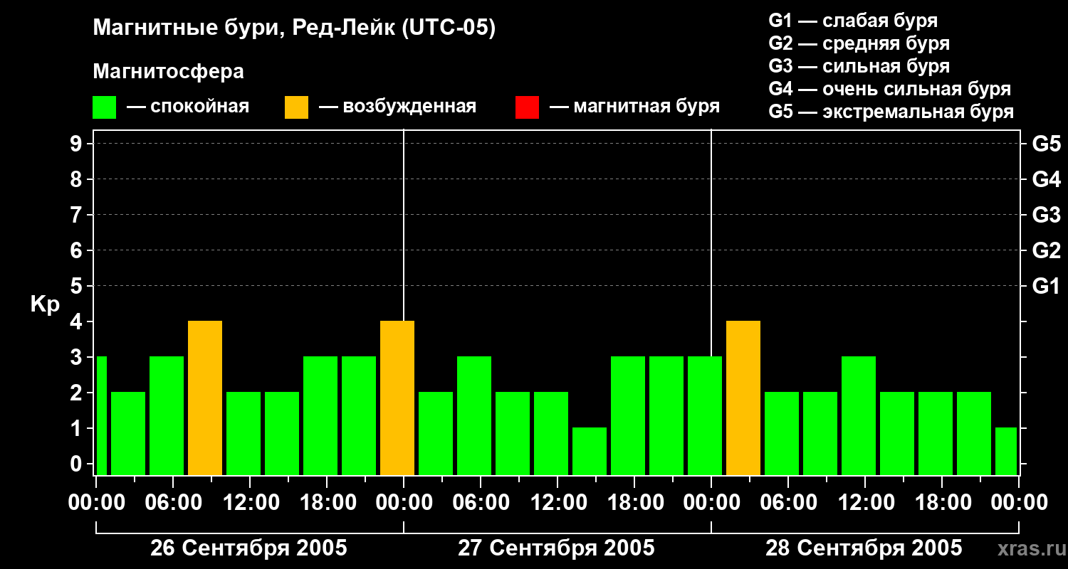 Магнитные бури в Ред-Лейке 28 сентября 2005 года