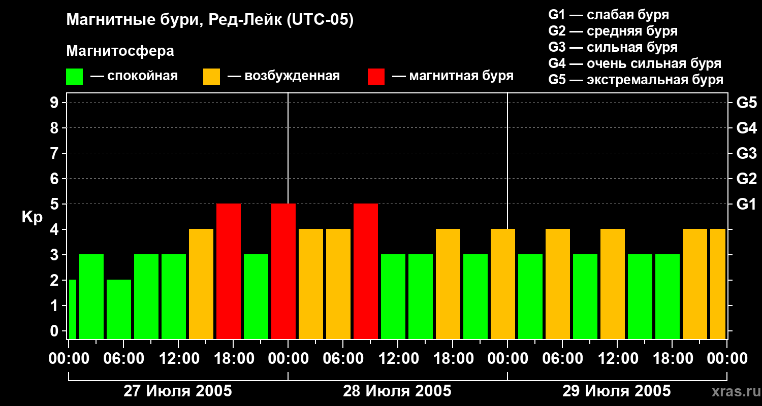 Магнитные бури в Ред-Лейке в июле 2005 года