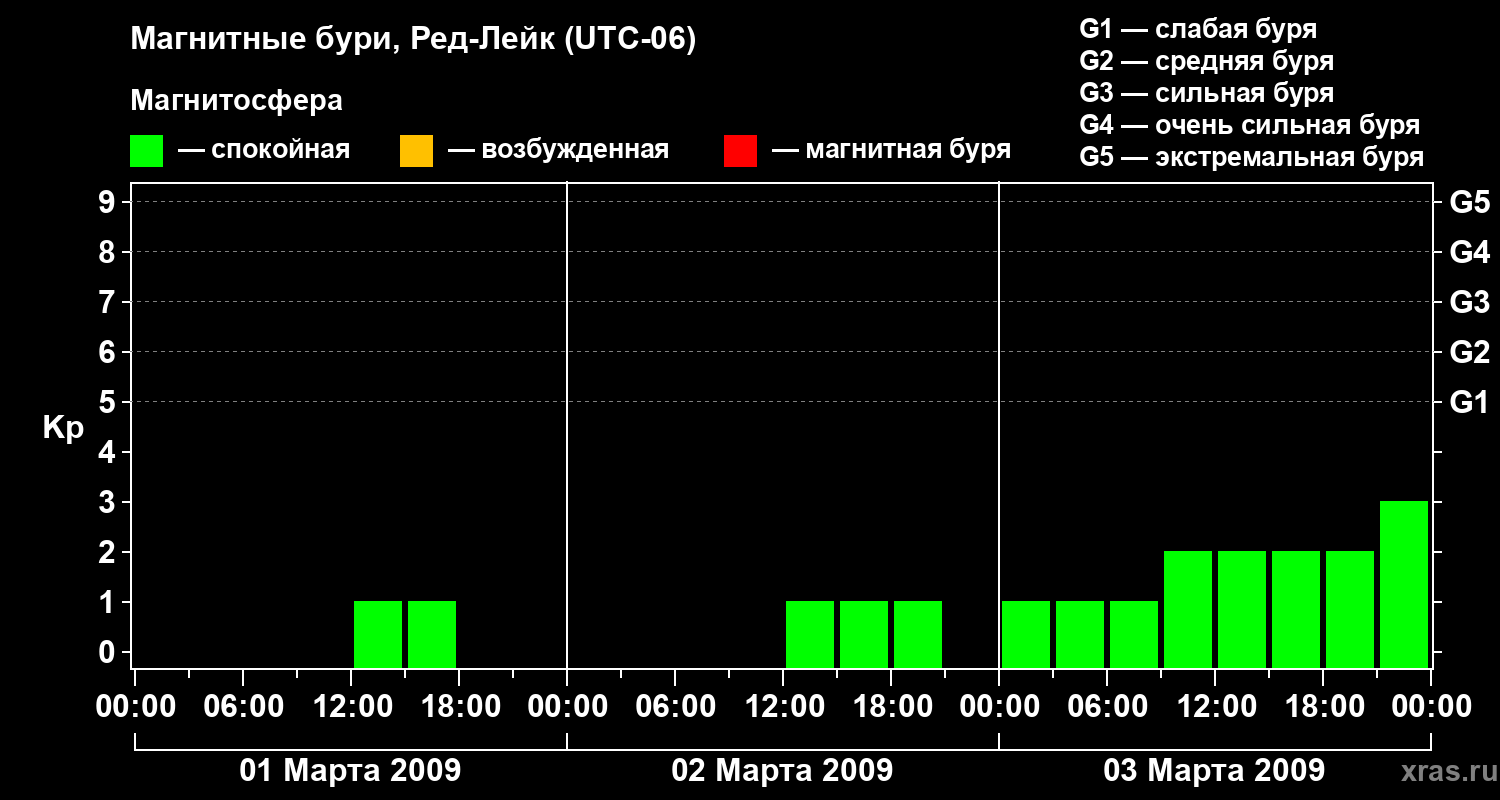 Магнитные бури в Ред-Лейке 3 марта 2009 года