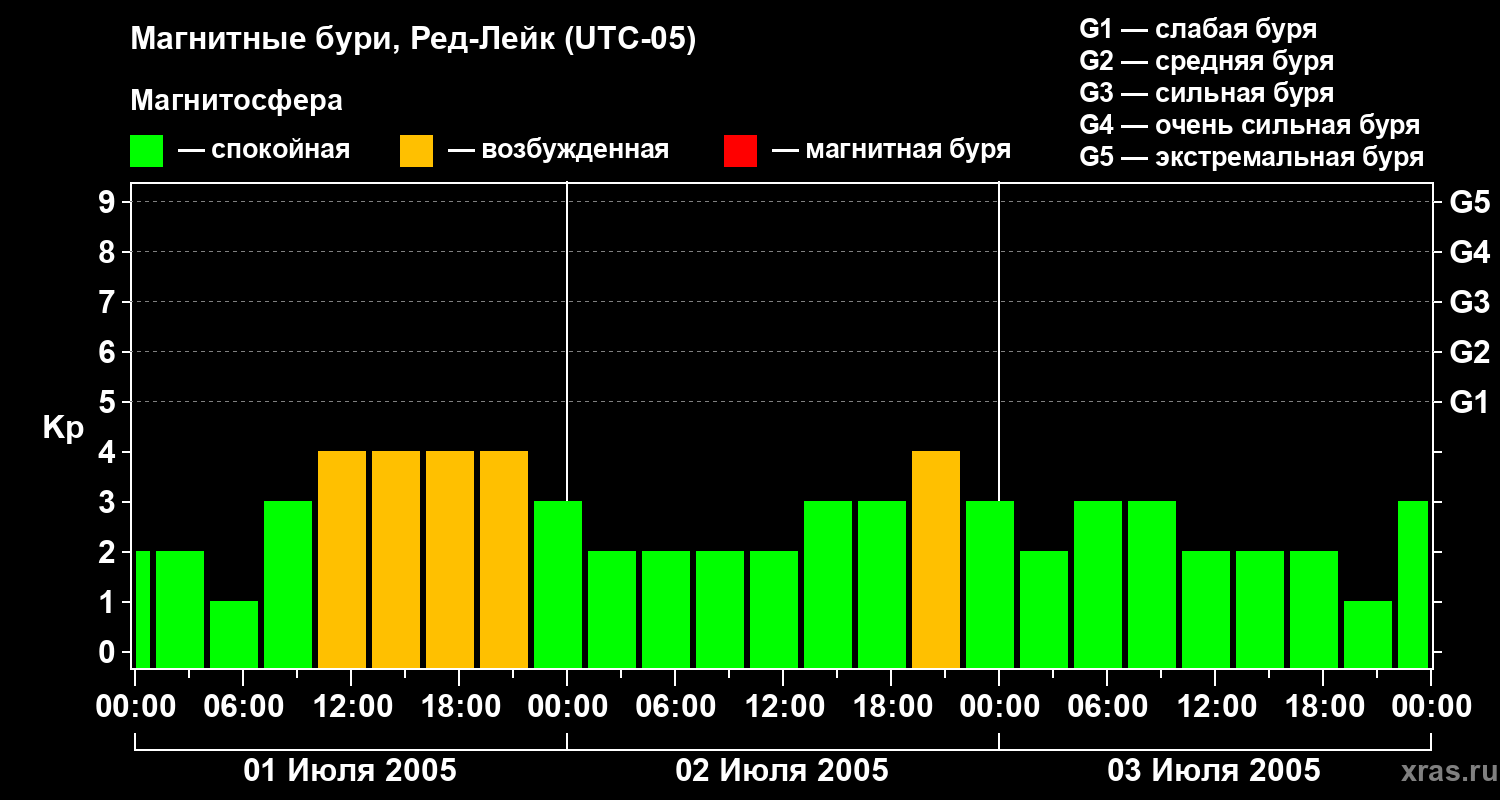 Магнитные бури в Ред-Лейке 3 июля 2005 года