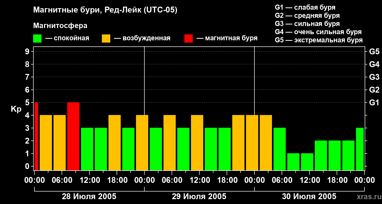 Магнитные бури в Ред-Лейке 30 июля 2005 года