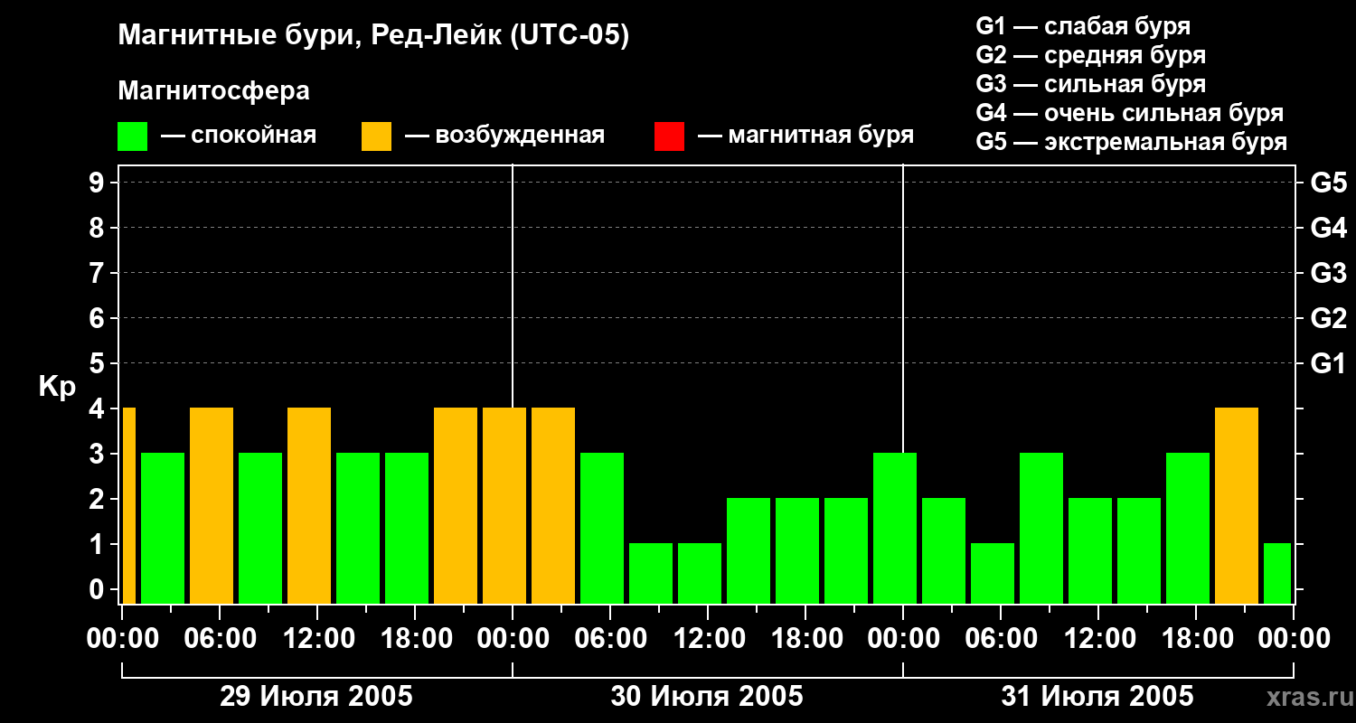 Магнитные бури в Ред-Лейке в июле 2005 года