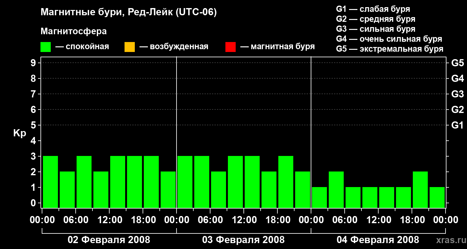 Магнитные бури в Ред-Лейке в феврале 2008 года