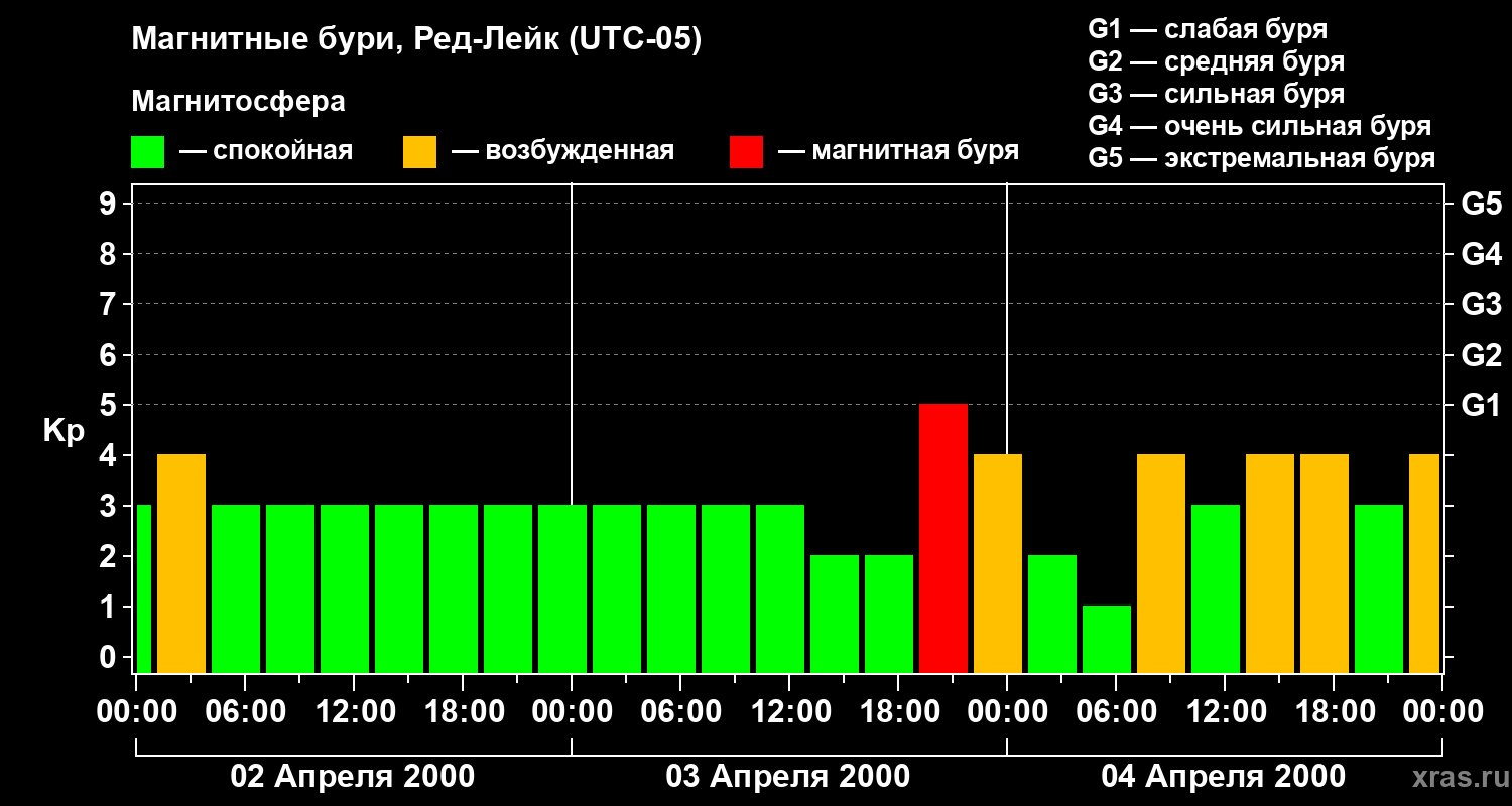 Магнитные бури в Ред-Лейке 4 апреля 2000 года