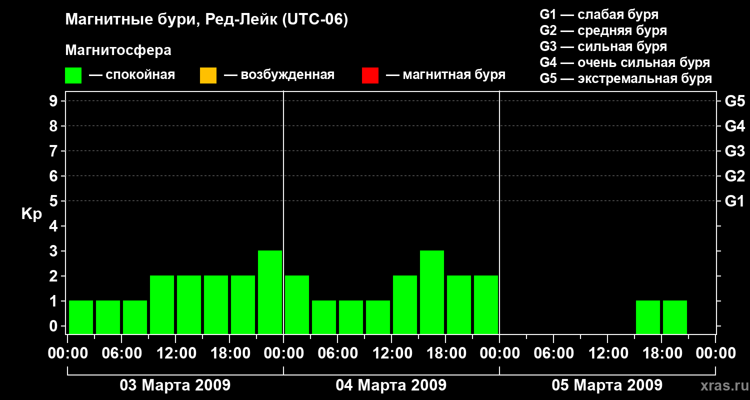 Магнитные бури в Ред-Лейке 5 марта 2009 года