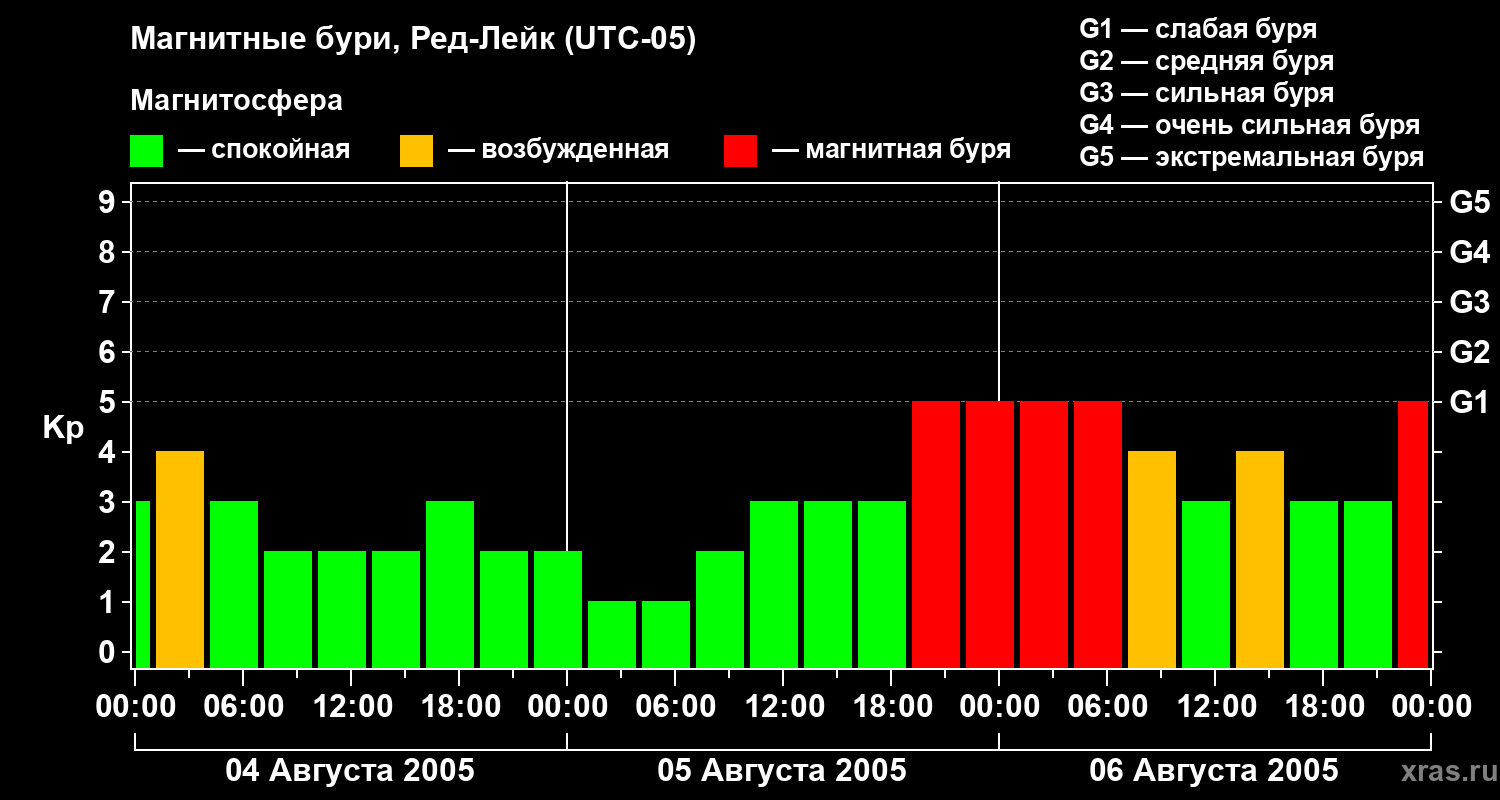 Магнитные бури в Ред-Лейке в августе 2005 года
