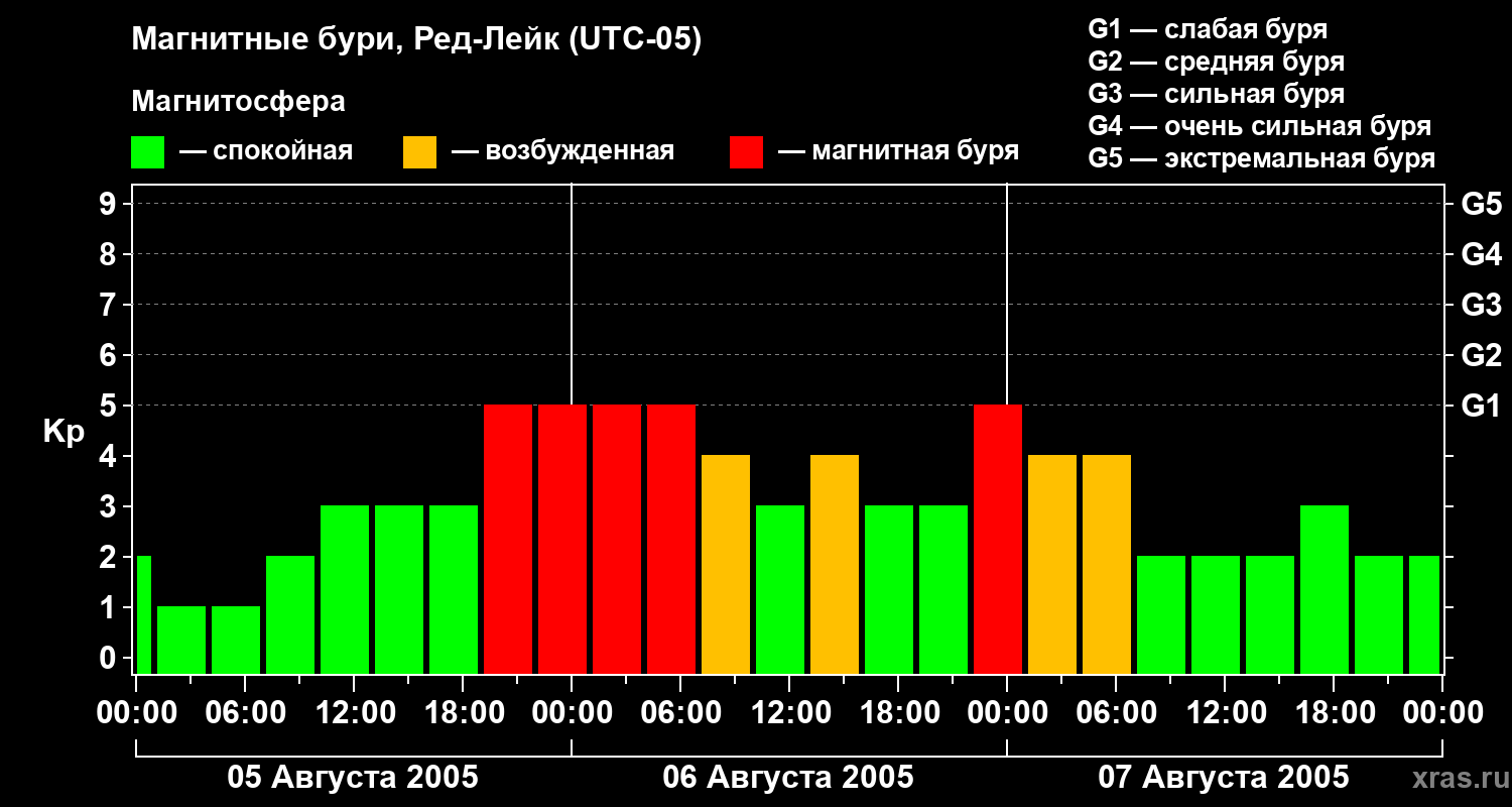Магнитные бури в Ред-Лейке в августе 2005 года