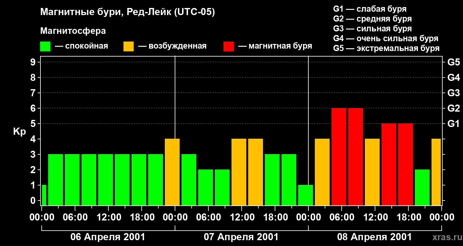 Магнитные бури в Ред-Лейке 8 апреля 2001 года