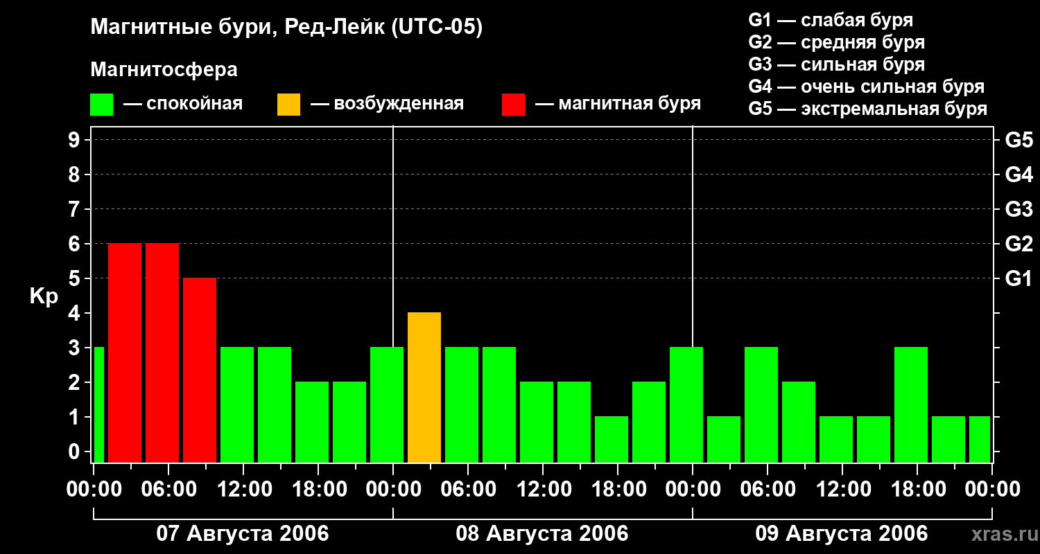 Магнитные бури в Ред-Лейке 9 августа 2006 года