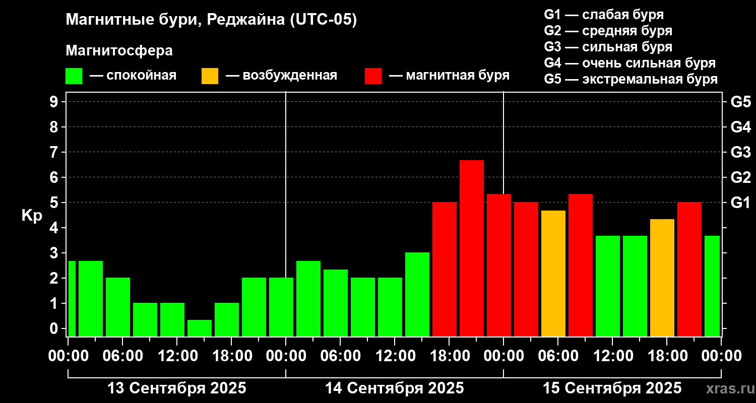Магнитные бури в Реджайне 15 сентября 2025 года
