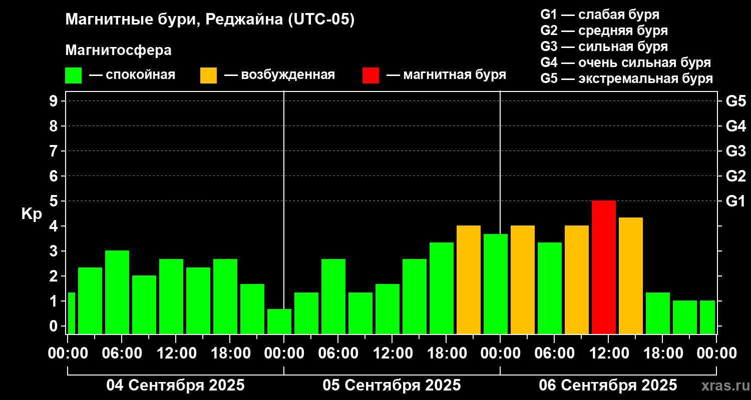Магнитные бури в Реджайне 6 сентября 2025 года