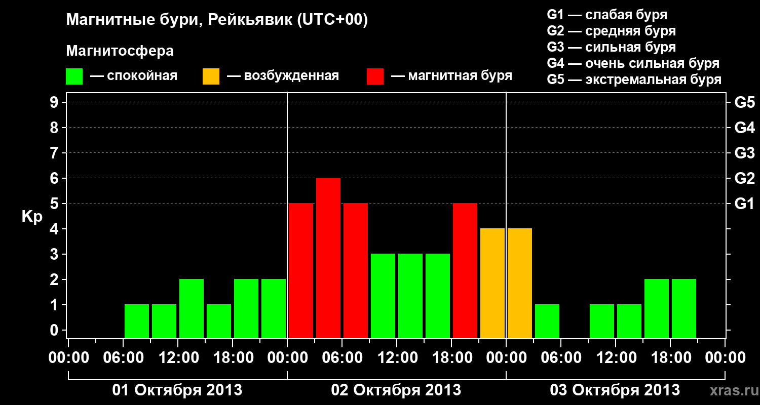 Магнитные бури в Рейкьявике 3 октября 2013 года