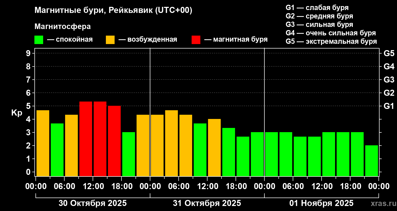 Магнитные бури в Рейкьявике 1 ноября 2025 года