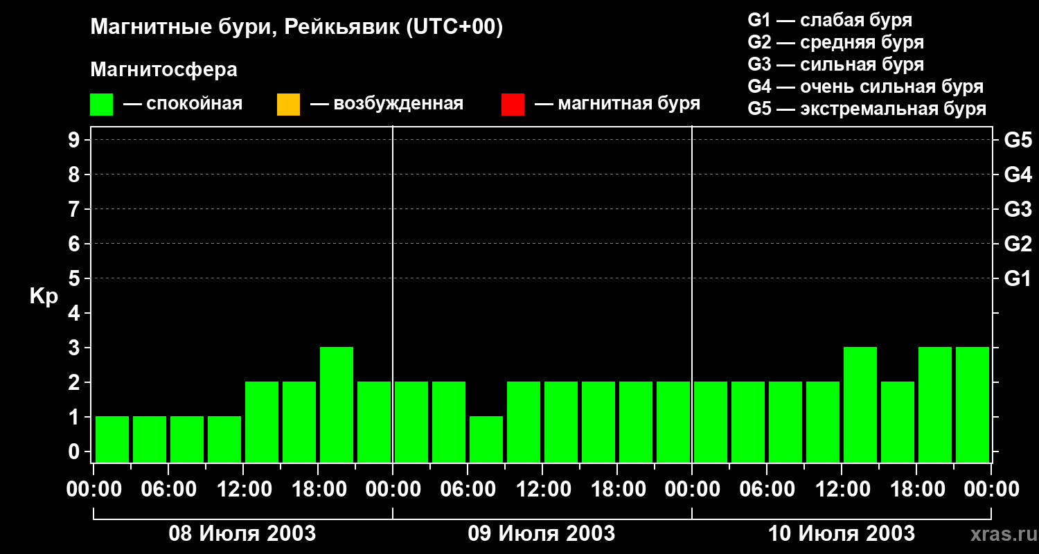 Магнитные бури в Рейкьявике — 10 июля 2003 года