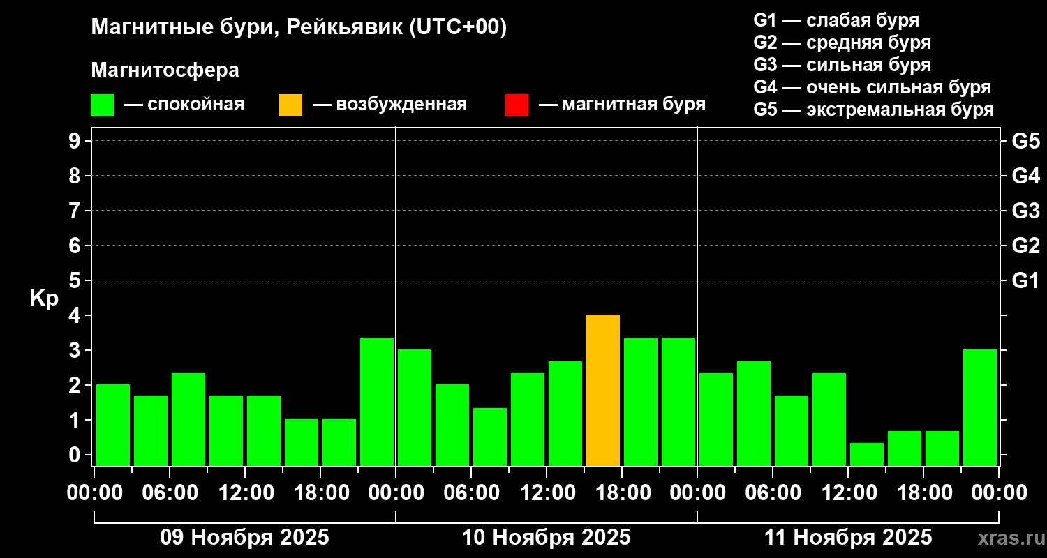 Магнитные бури в Рейкьявике — 11 ноября 2025 года
