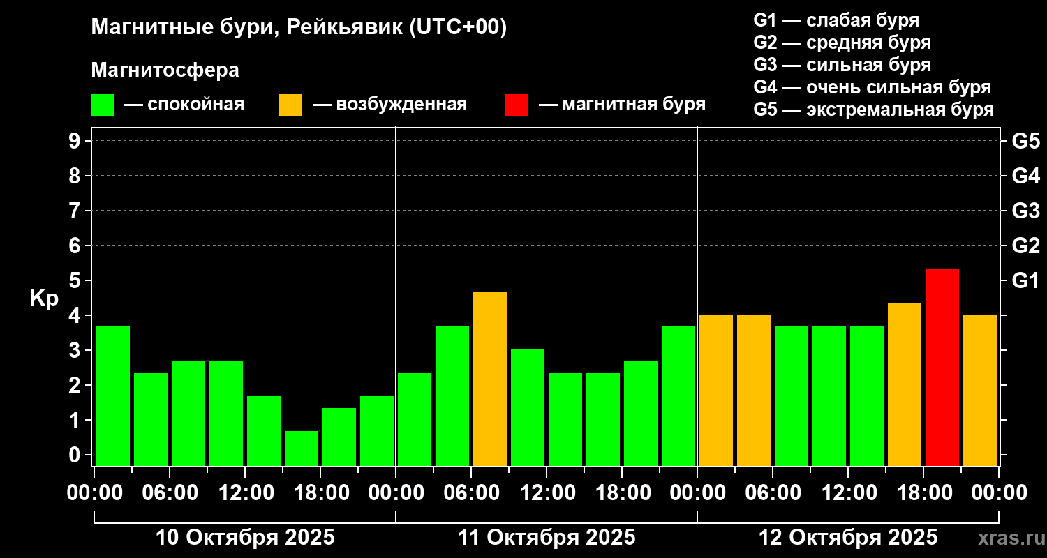 Магнитные бури в Рейкьявике — 12 октября 2025 года