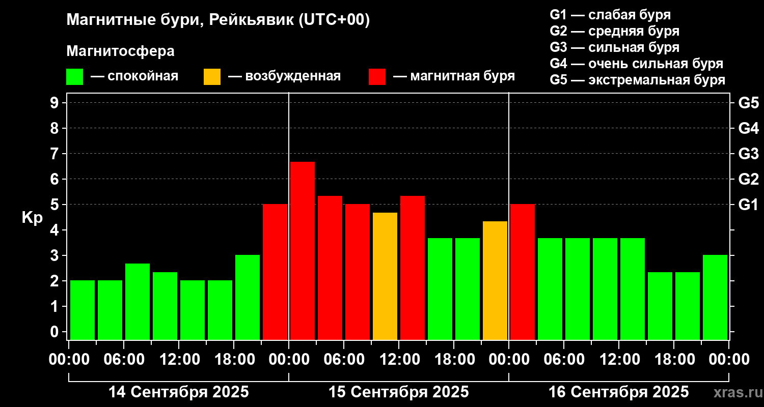 Магнитные бури в Рейкьявике — 16 сентября 2025 года