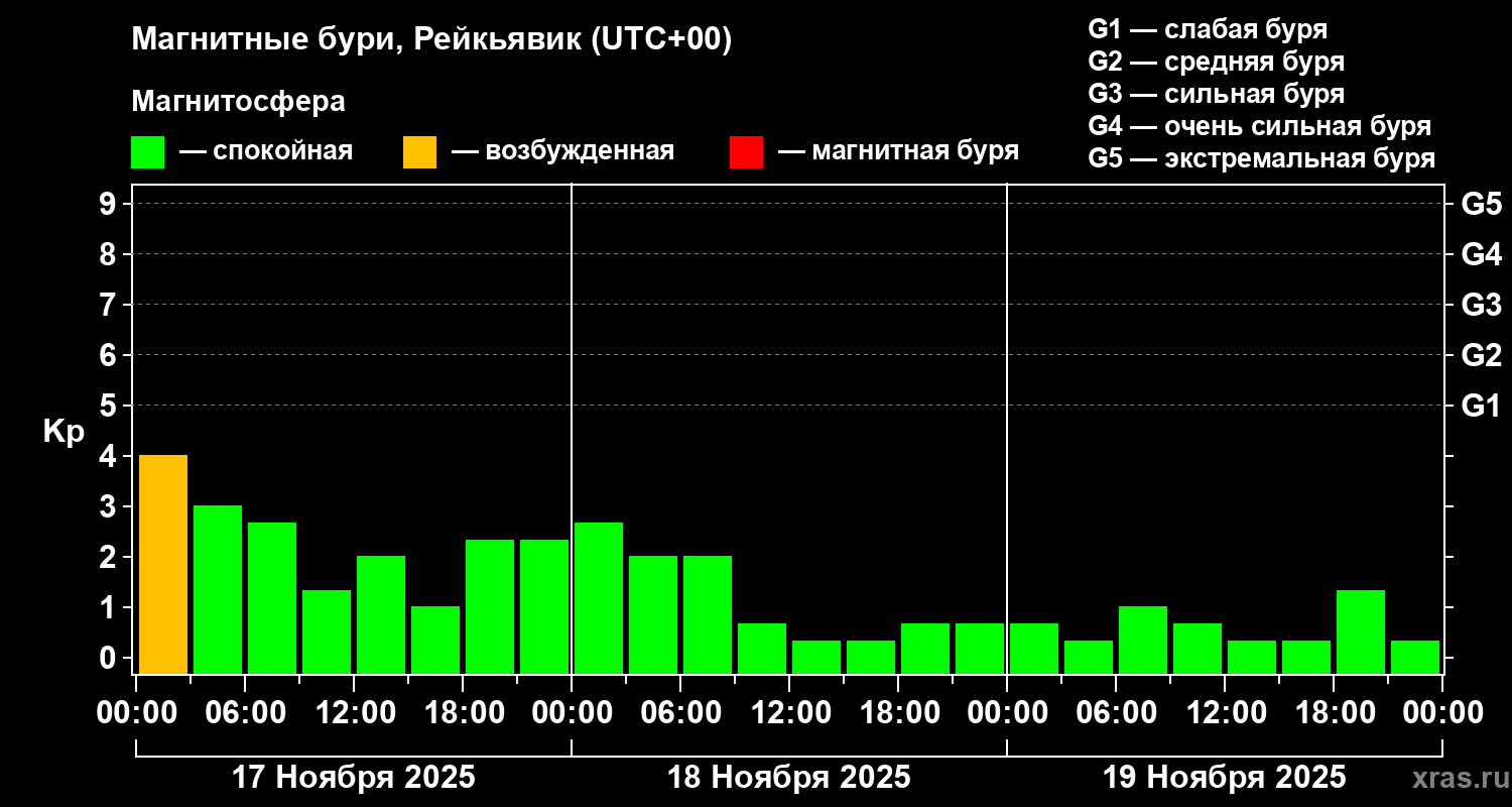 Магнитные бури в Рейкьявике 19 ноября 2025 года