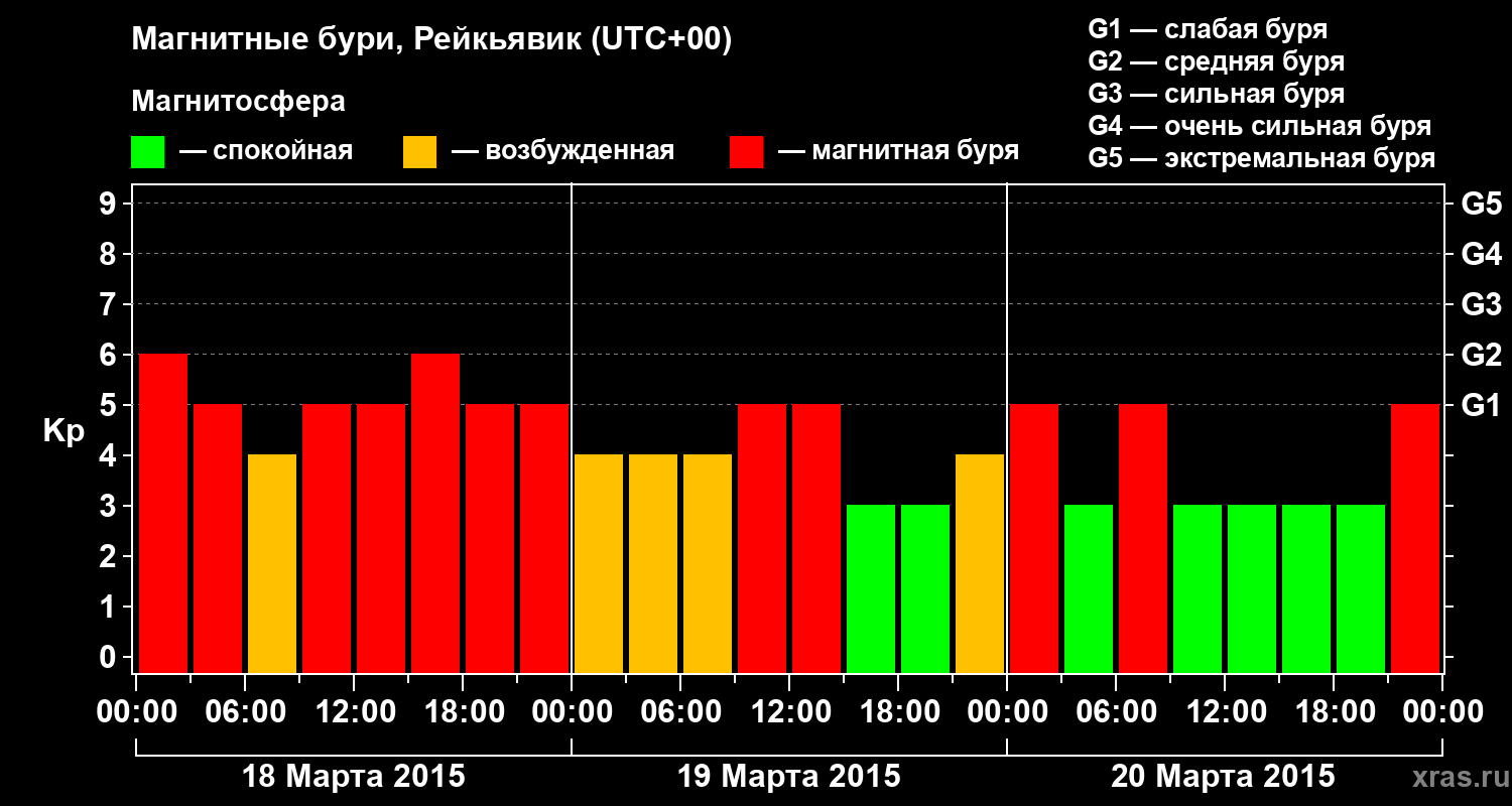 Магнитные бури в Рейкьявике 20 марта 2015 года