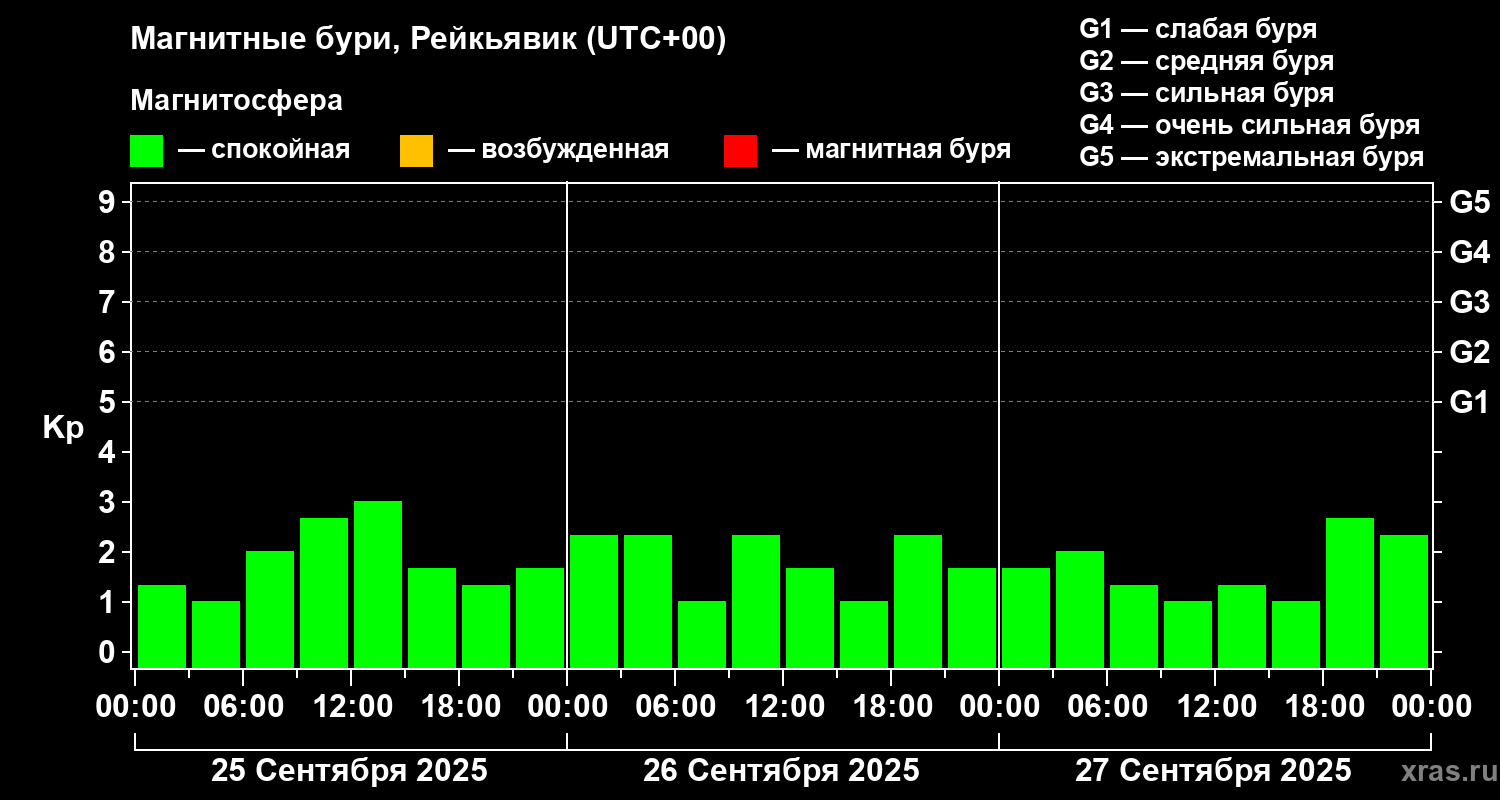 Магнитные бури в Рейкьявике — 27 сентября 2025 года