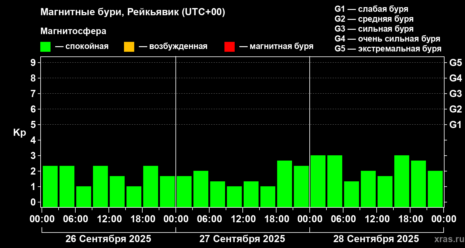 Магнитные бури в Рейкьявике — 28 сентября 2025 года