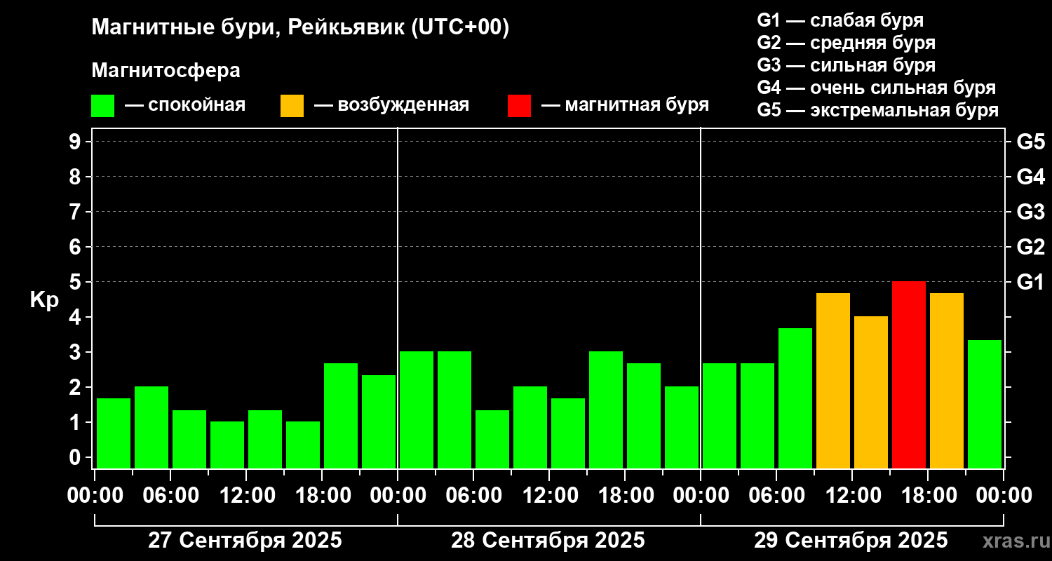 Магнитные бури в Рейкьявике — 29 сентября 2025 года
