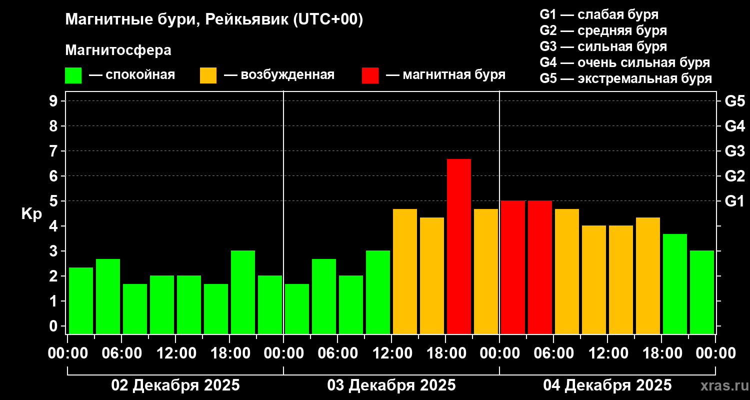 Магнитные бури в Рейкьявике 4 декабря 2025 года
