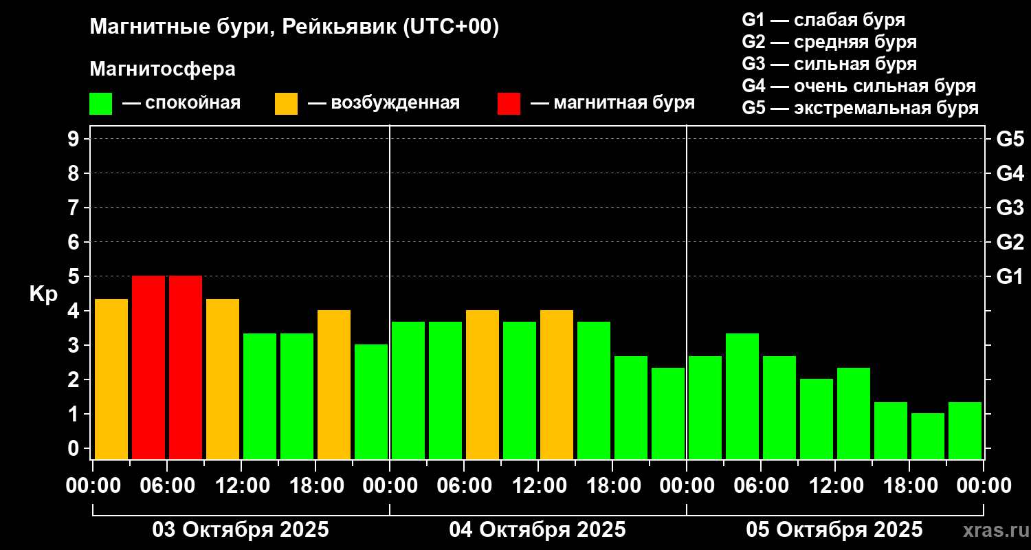 Магнитные бури в Рейкьявике — 5 октября 2025 года